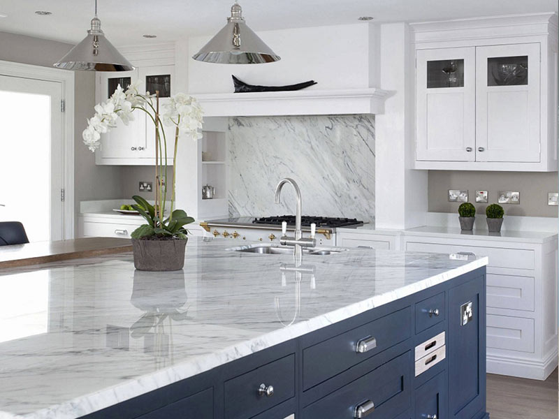 سنگ طبیعی مرمر سالها است که در دکوراسیون داخلی و بیرونی ساختمان کاربرد دارد. استفاده از مرمر برای ساخت کانتر کابینت بسیار متداول است. سنگ مرمر یک صفحه کابینت ضد آب، ضد حرارت، مقاوم و ضد باکتریال و ضد آلرژی است. تمیز کردن کانتر مرمر بسیار ساده است؛ هر گونه کثیفی یا لکه با یک دستمال مرطوب از بین میرود. صفحه کابینت مرمر نسبت به سنگهای مصنوعی گرانتر است و در مجاورت مواد اسیدی دچار خوردگی میشود. امکان بروز خط و خش و خراشیدگی بر روی سنگ مرمر یک نقطه ضعف برای یک صفحه کابینت آشپزخانه محسوب میشود. اما زیبایی آن منحصربفرد و قابل توجه است.